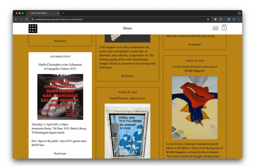 Together with Jérôme Rigaud, we designed and developed the website for the publisher and book binding studio Book Works in London, and continue to support its development.