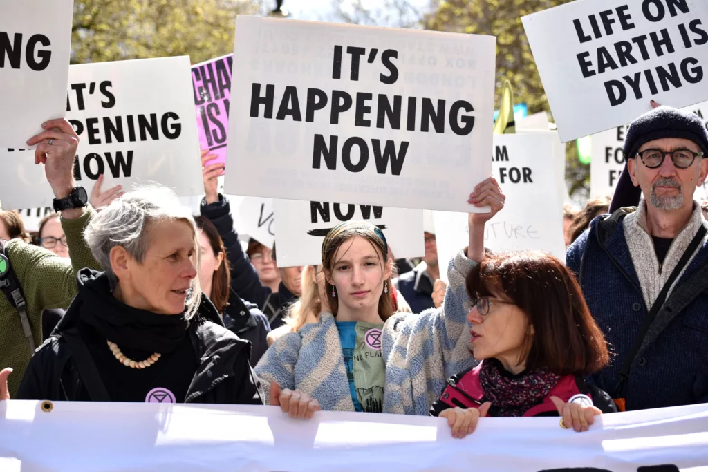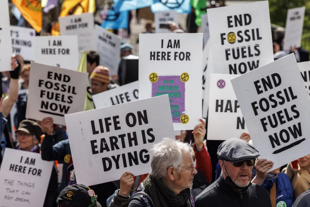 London, UK. 9 April 2022. Extinction Rebellion supporters march to Trafalgar Square. Credit: Andrea Domeniconi/Alamy Live News