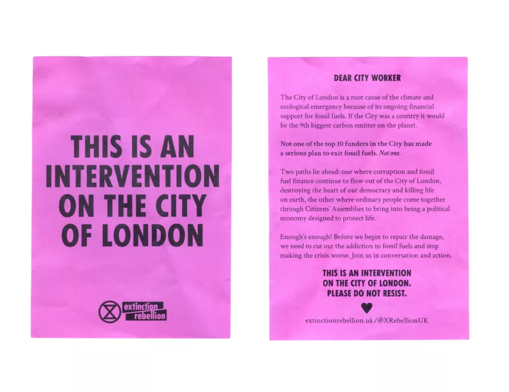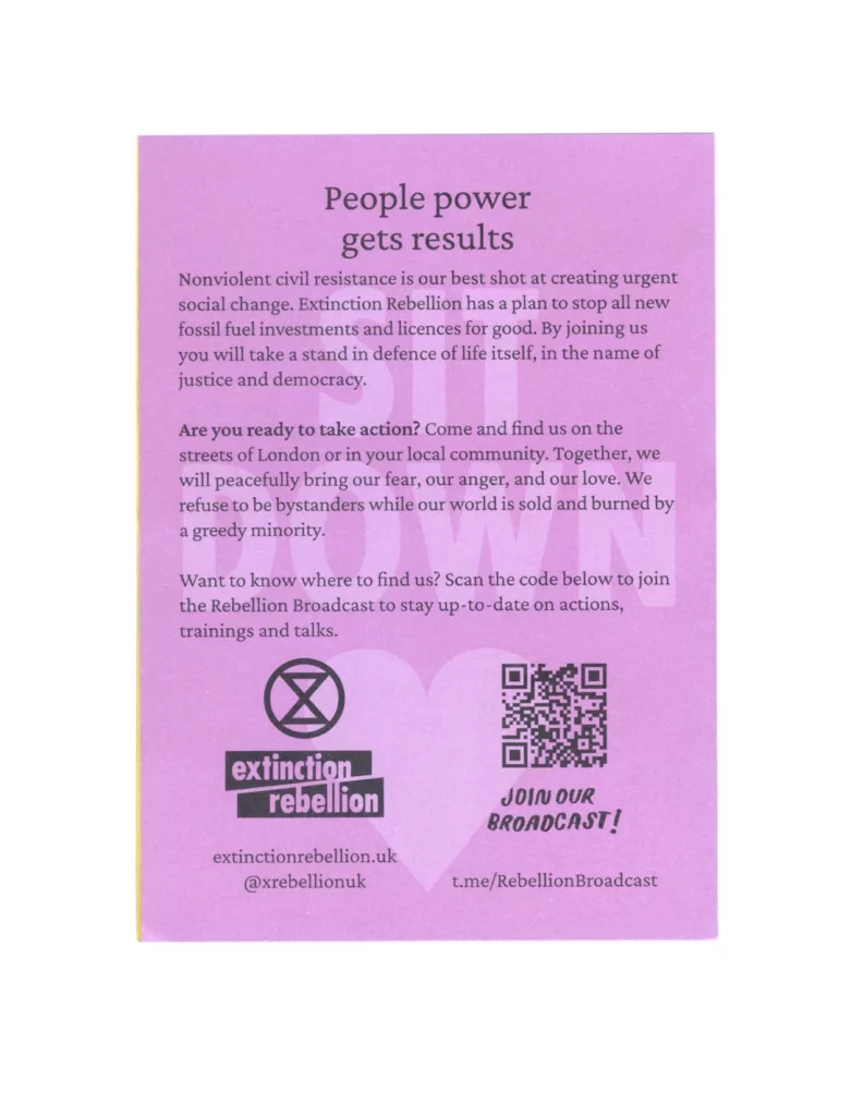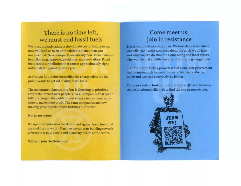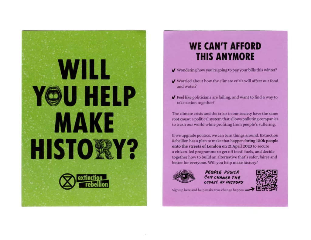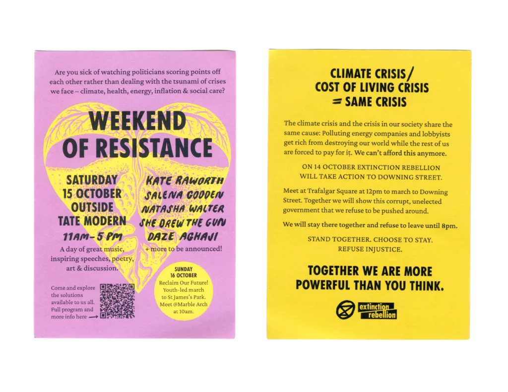A selection of flyers created for Extinction Rebellion UK. These were handed out during protests as part of their outreach efforts.