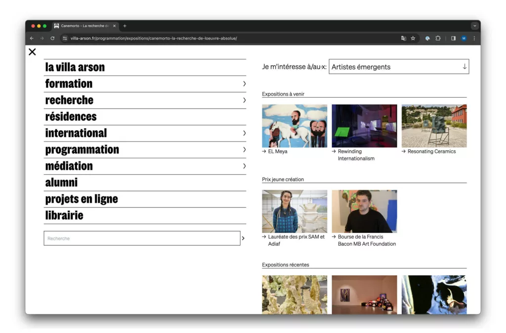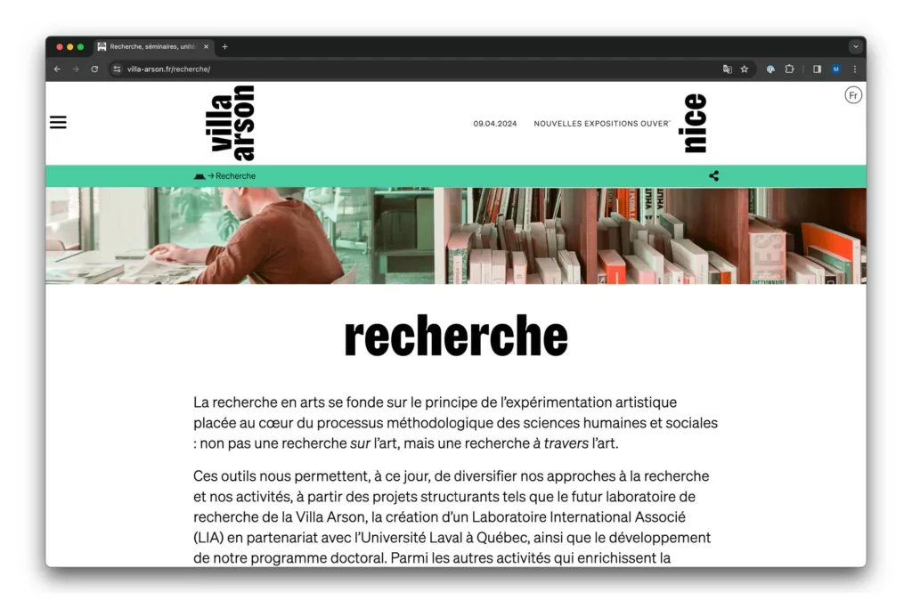 Together with In the shade of a tree and Jérôme Rigaud, we collaborated on a new identity and website for Villa Arson, a national school of fine arts and contemporary arts center in Nice, France. We continue to develop digital projects for the Villa.